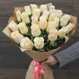 Роза кремовая (количество, выбранное Вами) 50-60 см., целлофан, лента.