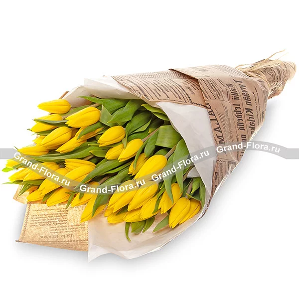 Тюльпан – это нежный и хрупкий цветок, который способен покорить своей красотой даже самое неприступное и ледяное сердце. А огромный букет желтых тюльпанов может стать для вас началом примирения с любимой девушкой или зажжет страсть в глазах сотрудницы, которая вам давно симпатична.rnНе стоит думать, что желтые тюльпаны являются предвестниками чего-то плохого, ведь эти солнечные бутоны могут поднять настроение и внести позитив в серые холодные будни. Но только при условии, что вы закажите букет из тюльпанов с доставкой уже сегодня.rnЗаказывая цветы в службе доставки цветов Grand-flora, вы можете быть уверены, что ваш любимый человек получит самые свежие и ароматные бутоны.