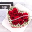 11 роз (на фото): роза красная - 11 шт., гипсофила, оазис сердце малое. Примерный размер: 25Х25 см.