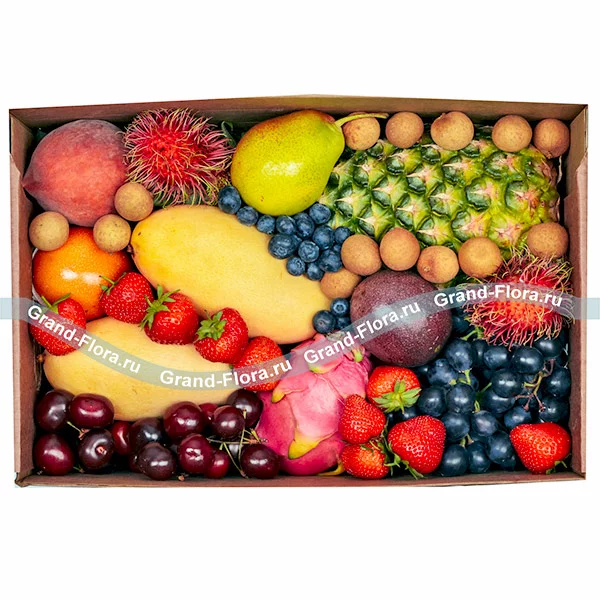 экзотическим приключением и настоящей феерией позитива и ярких эмоций. В коробке обнаружится настоящий калейдоскоп самых разнообразных фруктов, вкусов и ароматов. Будьте оригинальными и дарите своим любимым счастливые улыбки и фрукты с доставкой.